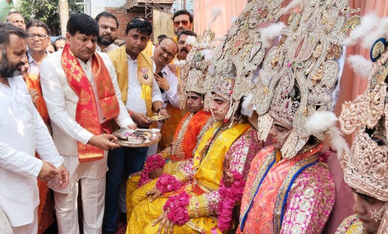 आगरा। बजाओ ढोल स्वागत में मेरे घर राम आए हैं हे राम! हे राम! तेरे चरणों में चारों धाम जनकपुरी में इन भक्ति गीतों के मध्य भक्ति और श्रद्धा का अनूठा नजारा था। गुरुवार सुबह पूरी मिथिलानगरी प्रभु राम और उनके भाइयों की अगवानी को आतुर दिखाई दी। मिथिला नगरी में हर ओर प्रभु राम का रंग और राम बारात के आगमन का उल्लास छाया हुआ था। ऐसा लगा जैसे राम बारात की अगवानी को पूरी मिथिला नगरी उमड़ पड़ी हो। चांदी के रथ पर विराजमान भगवान विष्णु और माता लक्ष्मी के स्वरूप, वातानुकूलित बग्घी पर विराजमान राजा दशरथ अजय अग्रवाल व उनके बेटे-बहू अनुभव अग्रवाल व आशिमा अग्रवाल, अलग-अलग आकर्षक रथों पर सवार शेषावतार लक्ष्मण, भरत और शत्रुघ्न के स्वरूप, भजनों की मधुर स्वर लहरी बिखेरते बैंड वादक और सबसे पीछे मयूर रथ पर विराजमान मर्यादा पुरुषोत्तम प्रभु श्री राम सुबह 10:30 बजे जब विजय प्रकाश गोयल हुंडी वालों के बालाजी नगर स्थित निवास (दशरथ आवास) से नगर भ्रमण को निकले तो पग पग पर आरती, पुष्प वर्षा, दर्शन, फोटो, सेल्फी और एक झलक पाने को जनकपुरवासियों का रेला उमड़ पड़ा।